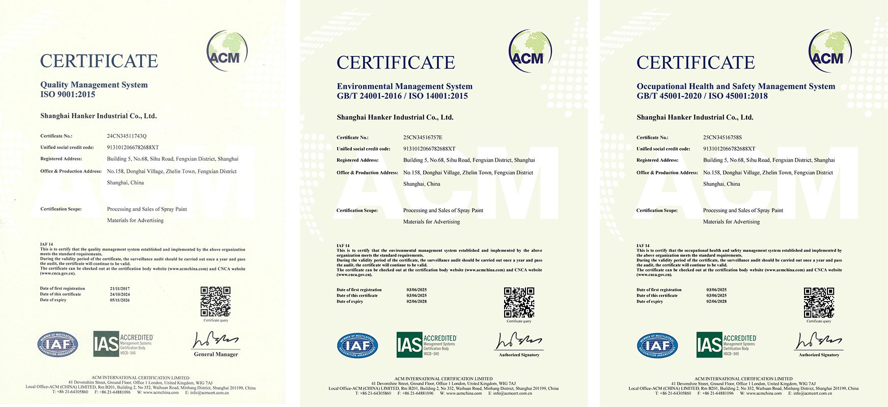 সম্প্রতি, সাংহাই হ্যাঙ্কার ইন্ডাস্ট্রিয়াল কোং, লিমিটেড ("হ্যাঙ্কার" হিসাবে পরিচিত) আইএসও 9001: 2015 কোয়ালিটি ম্যানেজমেন্ট সিস্টেম শংসাপত্র, আইএসও 14001 পরিবেশগত ব্যবস্থাপনা সিস্টেমের শংসাপত্র, এবং আইএসও 45001 পেশাগত স্বাস্থ্য ও সুরক্ষা ব্যবস্থাপনা সিস্টেমের শংসাপত্রের মাধ্যমে এসিএম আন্তর্জাতিক শংসাপত্র লিমিটেডের মাধ্যমে সফলভাবে প্রাপ্ত হয়েছে। এই অর্জনটি প্রমাণ করে যে সংস্থাটি মান নিয়ন্ত্রণ, পরিবেশ সুরক্ষা এবং কর্মচারী সুরক্ষায় আন্তর্জাতিক মানগুলি পুরোপুরি পূরণ করেছে। এই তিনটি সিস্টেম শংসাপত্র অধিগ্রহণ হ'ল হ্যাঙ্কারের স্ট্যান্ডার্ডাইজড ম্যানেজমেন্টের প্রতি দীর্ঘমেয়াদী প্রতিশ্রুতির ফলাফল। উত্পাদন প্রক্রিয়াগুলি অনুকূলকরণ, পরিবেশগত ঝুঁকি প্রতিরোধ ও নিয়ন্ত্রণ ব্যবস্থা স্থাপন এবং পেশাগত স্বাস্থ্য ও সুরক্ষা প্রশিক্ষণ ব্যবস্থার উন্নতি করে, সংস্থাটি কাঁচামাল সংগ্রহ থেকে সমাপ্ত পণ্য সরবরাহ পর্যন্ত পুরো চেইনের উপর মানক নিয়ন্ত্রণ অর্জন করেছে। ভবিষ্যতে, এই শংসাপত্রগুলি একটি ভিত্তি হিসাবে গ্রহণ করে, হ্যাঙ্কার প্রযুক্তিগত উদ্ভাবন এবং পরিচালনা আপগ্রেডকে আরও গভীর করবে, বিশ্ববিদ্যালয়গুলির সাথে শিল্প-বিশ্ববিদ্যালয়-গবেষণা সহযোগিতা সক্রিয়ভাবে প্রচার করবে, উপকরণ ক্ষেত্রে কাটিয়া প্রান্তের অ্যাপ্লিকেশনগুলি অন্বেষণ করবে এবং শিল্পের উচ্চমানের বিকাশে অবদান রাখবে